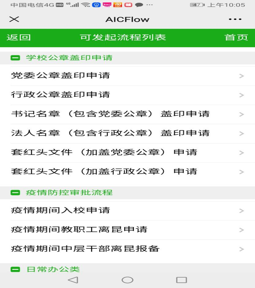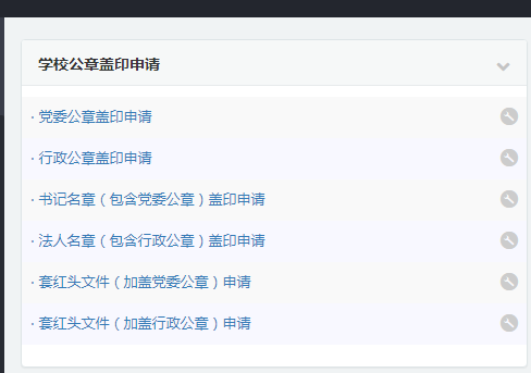 (二)、手机端:从教师端口的“网上办事大厅”进入,在“学院公章盖印申请 ”中进行使用申请。