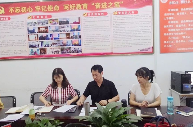 栾亚敏首先传达了5月9日云南文化艺术职业学院2019年党风廉政建设工作会议精神,并带领逐条认真学习《2019年度云南文化艺术职业学院党风廉政建设责任书》的考核内容,要求全体教师要始终绷紧党风廉政这根弦。2018年在落实党风廉政建设过程中,虽然年终考核舞蹈学院直属党支部被评为先进,但今年的工作要求更高,必须要做好考核结果运用。从加强学习教育、强化内部管理和完善制度机制入手,采取切实有效的措施,积极构建反腐倡廉防范体系,狠抓工作落实,切实把党风廉政建设落到实处。会上舞蹈学院栾亚敏书记、曹琳院长和副院长美兰卓玛签订《党风廉政建设“一岗双责”责任书》。