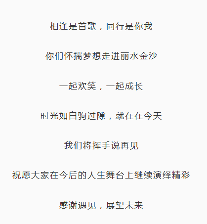 2019年1月3日,她们怀揣梦想,因为同一个梦想、同一个目标,对民族民间舞蹈的执着、热爱,相聚一起,来到丽水金沙。在这里,她们在舞台上挥洒,认真学习和排练,给百万观众带去最精彩的表演。这里,留下了她们最珍贵的回忆。2020年1月9日,她们与这段实习生涯正式告别。