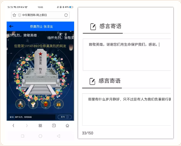 本次活动分为三部分:全体师生在“中华英烈网”参与网上祭奠英雄活动,为英雄们献花、点烛、祭拜和寄语留言,向英烈们致以崇高的敬意与哀思。在“中国英烈网”回顾了革命英烈和抗疫英雄的事迹。结合本专业开展观看红色经典剧目活动,要求学生写下观后感。各班班主任积极组织学生参与了献花、留言等祭奠活动,并按照活动要求收集学生观后感和祭奠图片;让学生充分回顾革命英烈、抗疫英雄的名人轶事,也对中国传统文化节日有更深的了解、认识和感知,继承并发扬前辈们的优良传统,缅怀革命英烈同时激发了学生的爱国主义情怀。不忘前辈们用鲜血和生命保卫人民安全,铸就了民族独立、人民解放的大无畏精神!不忘在抗击新型冠状病毒一线牺牲的抗疫英雄,他们舍生忘死,毫不犹豫把自己年轻的生命献给了党和人民,他们的无私奉献,保护了人民群众的生命安全。忆往思今,我们一定珍惜来之不易的幸福生活,坚定理想信念,以革命先烈为榜样,发扬先烈精神,继承先烈遗志,用实际行动向先烈致敬!