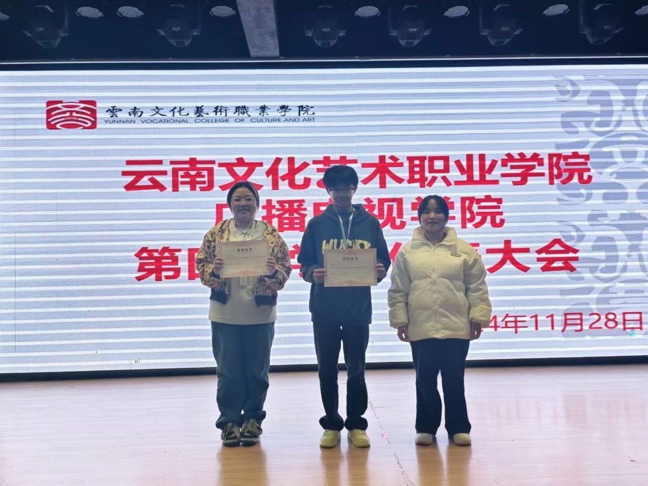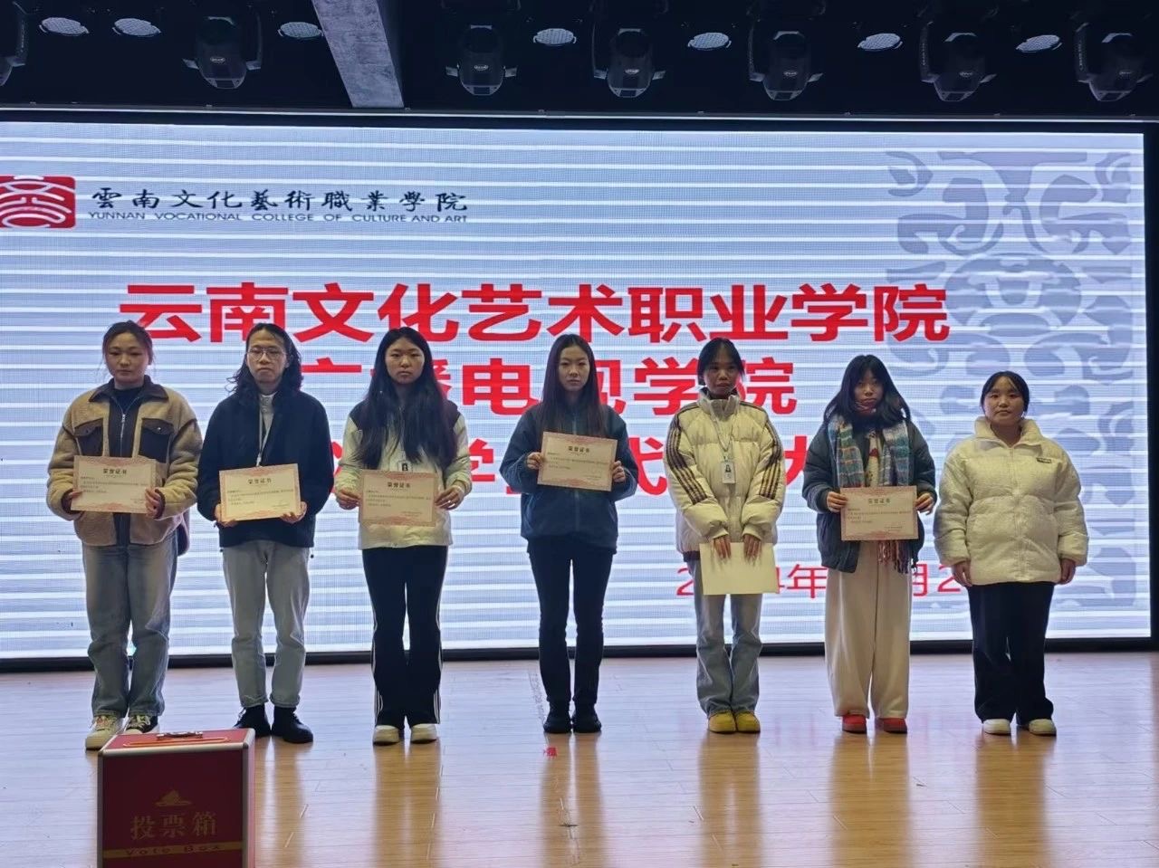 最后,大会向2024年广播电视学院学生会优秀部门和优秀成员颁奖,他们分别是