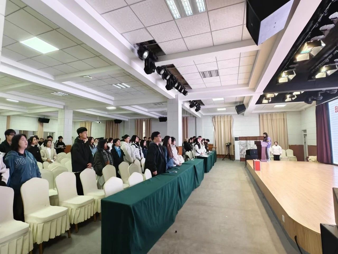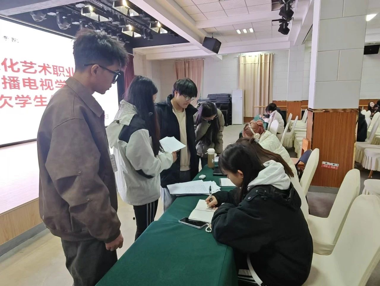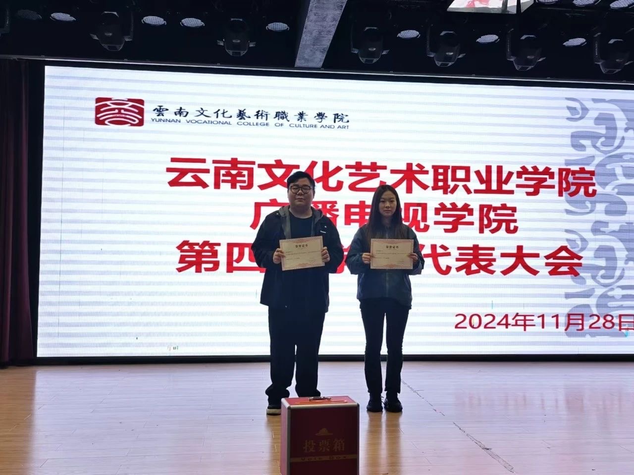 2024年11月28日17:20,广播电视学院第四次学生代表大会在多功能厅多功能厅召开。大会在庄严的国歌声中拉开了帷幕。
