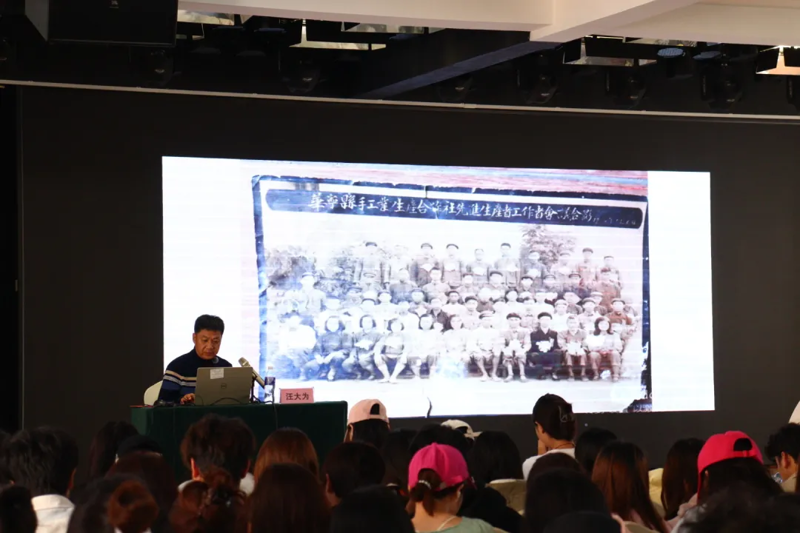 讲座中,汪大为先生结合自身从文化馆到美陶厂的命运转折、家族四代人与陶的深厚羁绊、在山野中寻找创作灵感的难忘经历,生动讲述了华宁陶的历史底蕴与创作理念。他重点分享了“泥的温度”这一核心主题,通过展示不同阶段的陶瓷作品,详解了泥料在手中的温度变化如何映射创作心境,以及制陶过程中“慢工出细活”的耐心如何塑造了自己的生活态度。此外,他还分享了“老陶瓷的新生命”创新实践中与生活美学结合的案例,让学生们深刻理解了传统工艺与现代生活的联结之道。
