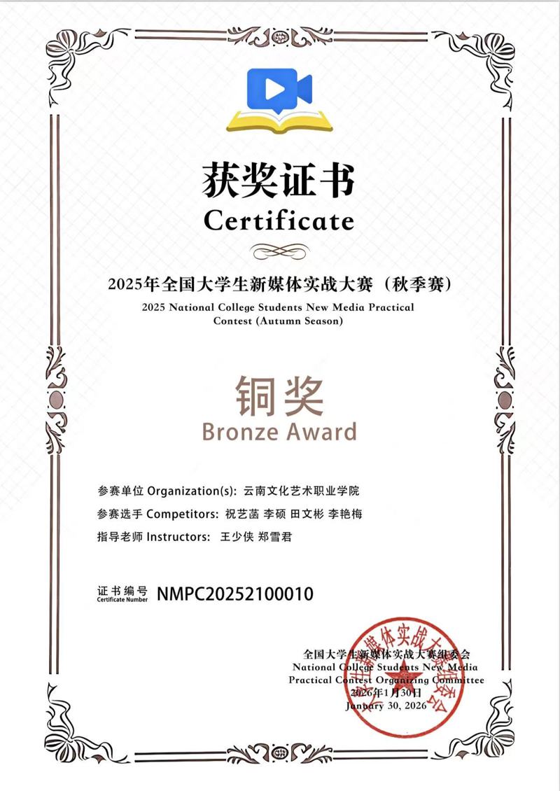 项目实施期间,学院组织骨干教师参与企业专项师资培训,大幅提升 “双师” 队伍实战能力;搭建校企协同育人平台,导入 6 种新媒体专业仿真实训系统,提供从课程学习到技能认证、实习就业的全链条支持。充分达成 “以训促学、以学促业” 的育人目标。此次项目结项是学院深化产教融合、推进就业育人的重要成果,为传媒类专业人才培养模式创新提供了实践样本。下一步,学院将持续深化校企合作,转化项目成果,优化课程体系,为培养更多适应行业发展的高素质技术技能人才筑牢基础。