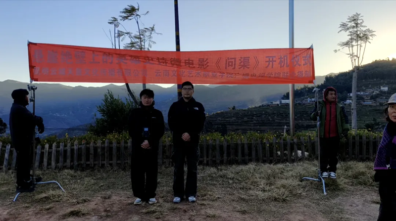 为深化产教融合、推动校企协同育人,广播电视学院与昆明云域天景文化传播有限公司达成联合摄制合作,选派 2022 级广播影视节目制作专业(五大)学生董炫佑、王桂晨,参与官方重点项目微电影《问渠》的实地拍摄工作。