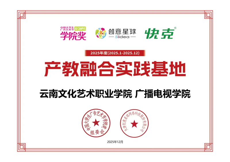 长期以来,广播电视学院始终锚定实践育人核心目标,将高水平专业赛事作为衔接课堂教学与行业实践的重要纽带,以“校企合作、以赛促教”为抓手,推动企业真实命题进课堂、行业前沿标准入课程,让学生在解决实际商业问题的过程中锤炼创意执行、策略规划等核心能力,真正实现“学习即实战、参赛即练兵”。这份亮眼的获奖成绩单,正是学院深耕实践教学的丰硕成果,更是学院与行业、企业协同育人培养高素质应用型人才的庄严承诺落地的有力印证。基于学院在应用型人才培养与产业实践方面的突出表现,大赛组委会与快克品牌联合授予广播电视学院“产教融合实践基地”称号,为双方后续深化合作、共建实践平台筑牢了基础。