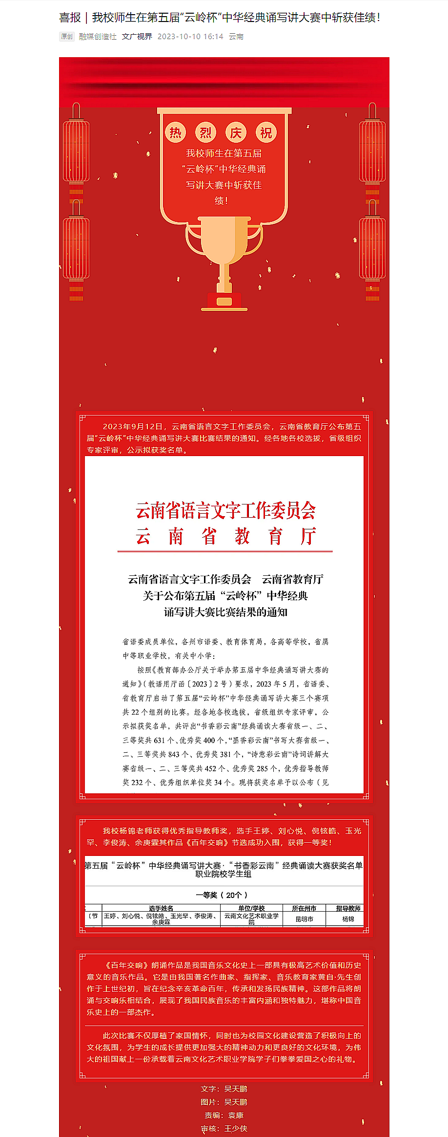 喜报|我校师生在第五届“云岭杯”中华经典诵写讲大赛中斩获佳绩!