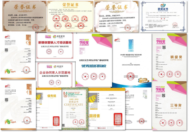 【年度成果】企业协同育人示范基地;产教融合实践示范基地;新媒体营销人才培训基地;优秀组织院校;大广节学院奖评委;近一年获学院奖等级奖4件,入围及优秀类700余件。