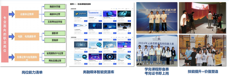 【学科与专业建设】学院重点打造融媒体传播专业群,以融媒体技术与运营为核心、广播影视节目制作为骨干、播音与主持为支撑,对接融媒体全产业链,聚焦媒介策划、内容生产等岗位群。背靠云南省数字经济与旅游康养两个千亿集群,专业群全面映射数字文旅“技术研发—内容生产—运营服务—安全保障—场景呈现”全产业链,六大专业分工明确、协同互补,形成闭环支撑体。