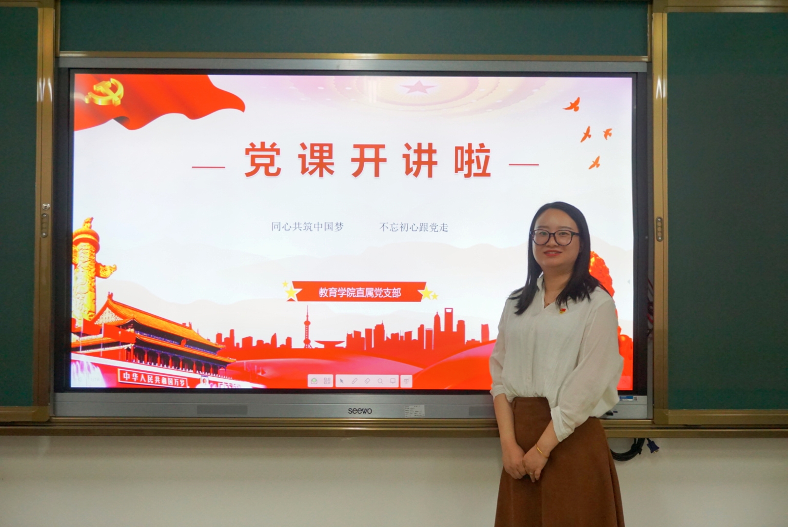 4月1日下午,教育学院直属党支部党史学习教育专题党课“同心共筑中国梦,不忘初心跟党走”开讲。由学院党支部纪检委员、政治辅导员李怡洁主讲,学院2018级预备党员、2019级发展对象、2000级入党积极分子参加学习。
