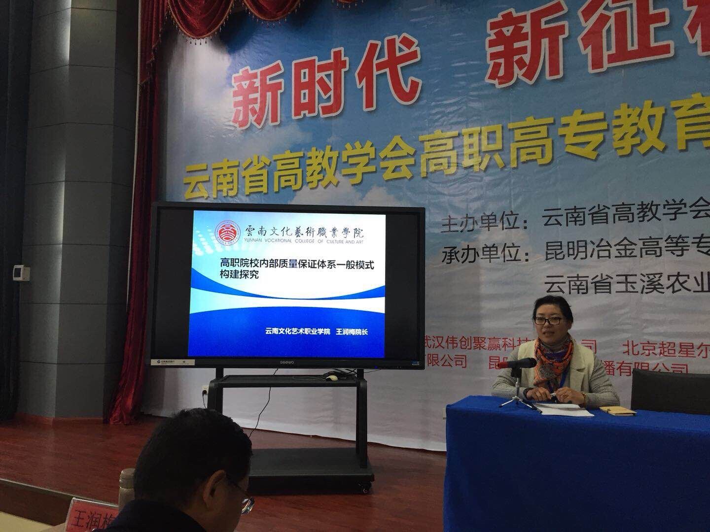 为认真学习、深入领会党的十九大精神,进一步贯彻落实《云南省高等职业教育创新发展行动计划(2016-2018年)实施方案》,推动高等职业教育创新发展,推进优质高职院校建设,我校王润梅校长带领相关职能部门一行4人,于20171123-25日,在玉溪农业技术职业学院参加本年度高职高专理事会议。本次会议以“落实创新行动发展计划,推进高职教育创新发展为主题”,我校王润梅校长代表学校作了“高职院校内部质量保证体系一般模式构建探究”的交流发言,我校内部质量诊断与改进工作获得了与会各兄弟院校的高度认可和赞誉。
