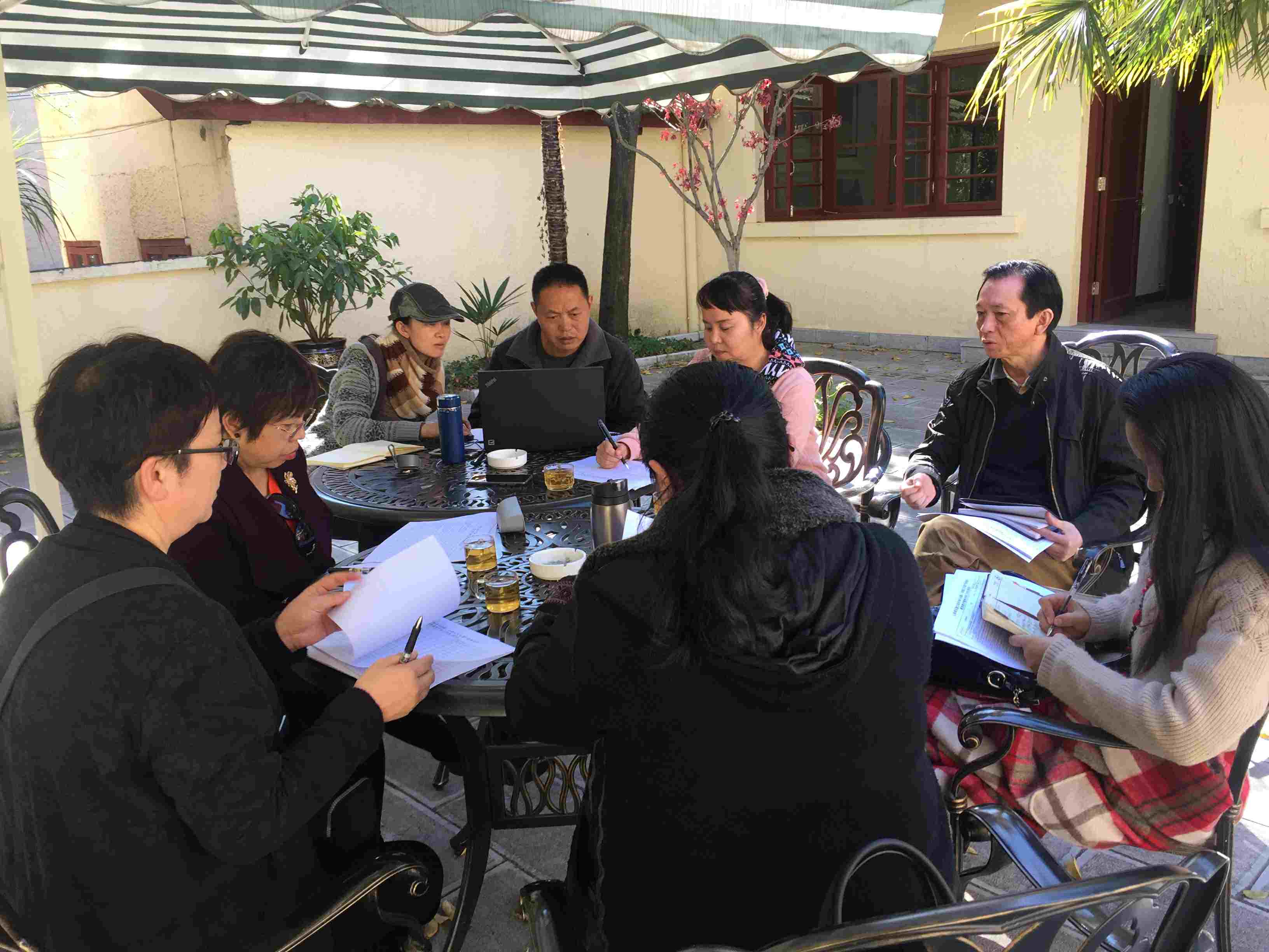 云南省民族文化传承与创新、非物质文化遗产传承保护教育教学案例评审第六组专家汇评会于12月14日下午14时在我院佟家大院举行。主持本次会议的有案例评审工作组组长王蒙教授和案例评审工作组副组长苏燕老师。担任本次第六评审组组长的是云南交通职业技术学院罗建华教授,另我们还特邀了昆明学院段智毅教授、我院音乐学院院长俞燕教授、杂技学院院长国家一级演员蒋波老师和综合艺术学院副院长张汝兰老师担任第六评审组的专家组成员。