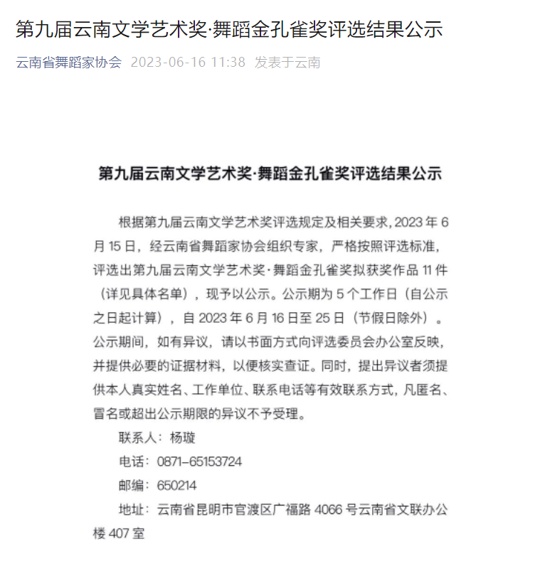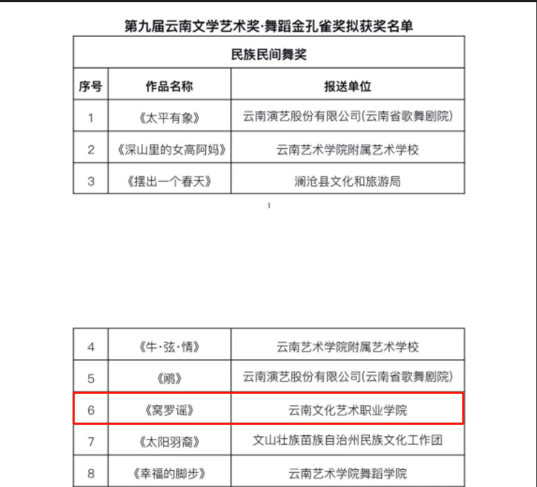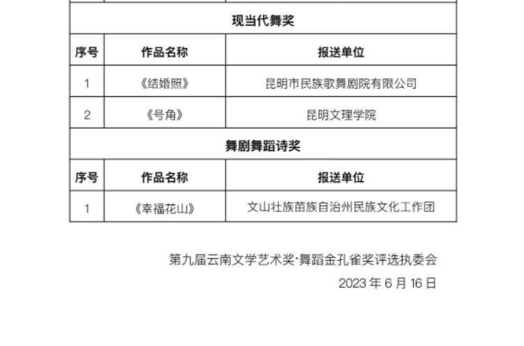 第九届云南文学艺术奖·舞蹈金孔雀奖评选结果公示