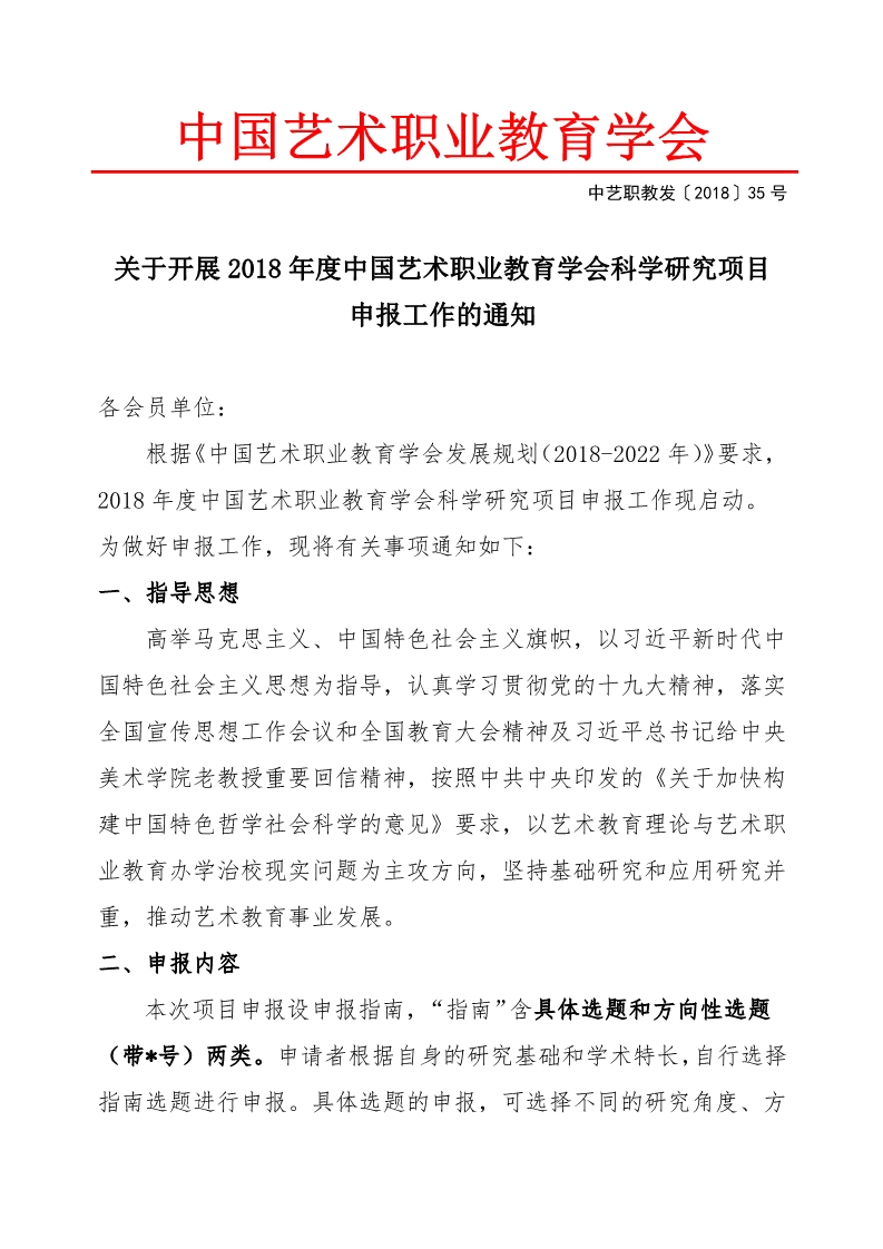 2018年度中国艺术职业教育科学研究项目申报工作的通知