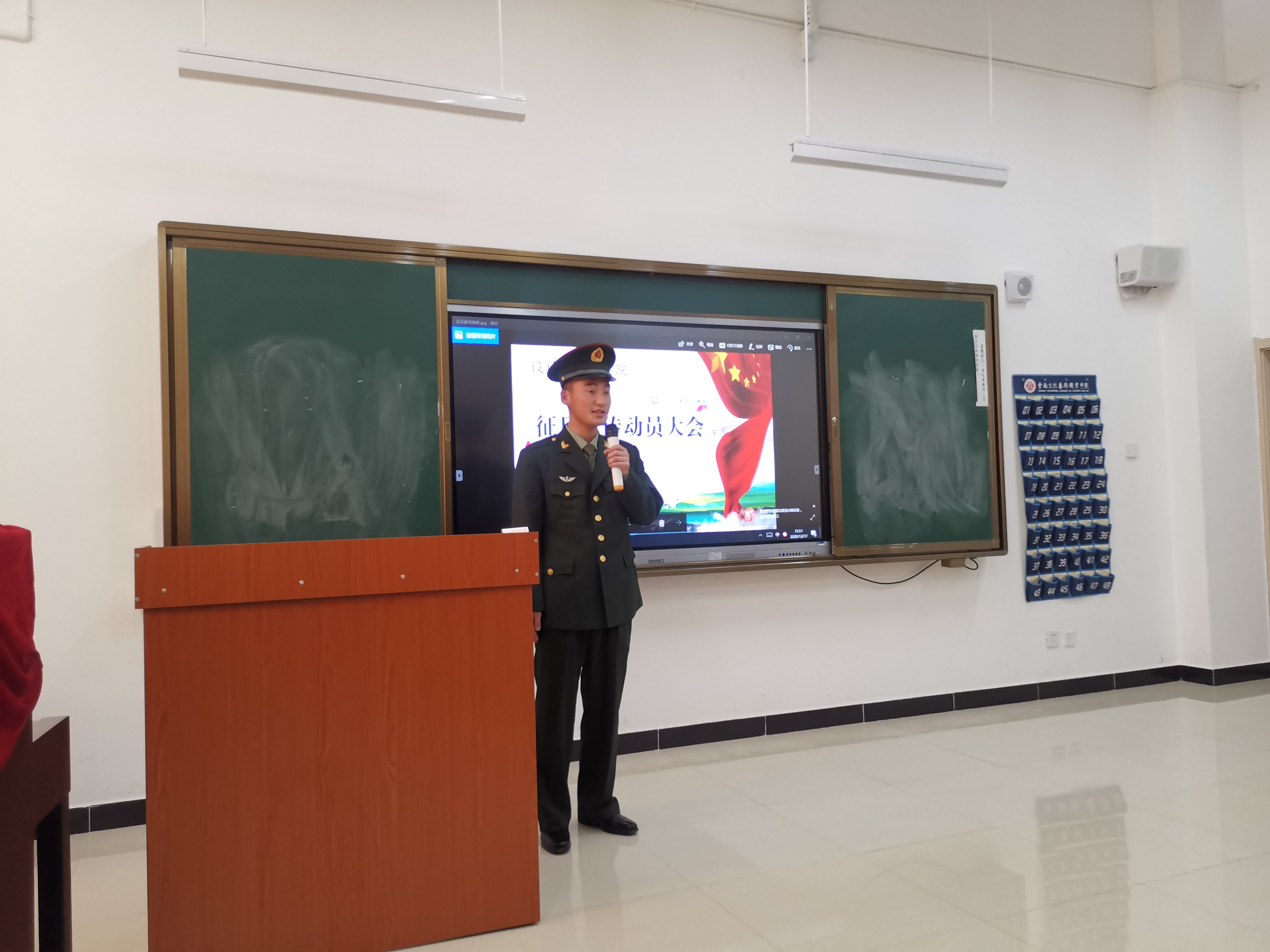 动员大会中,黄昌华同志首先结合自己的从军生涯为师生们作了详细描述,同时他从国防层面、学生层面、政策层面,深入讲解了大学生入伍的重要意义和优惠政策。最后他激动地说道:“有志青年携笔从戎,绽放青春能量,实现家国理想。”师生们听后均受到了极大的鼓舞。