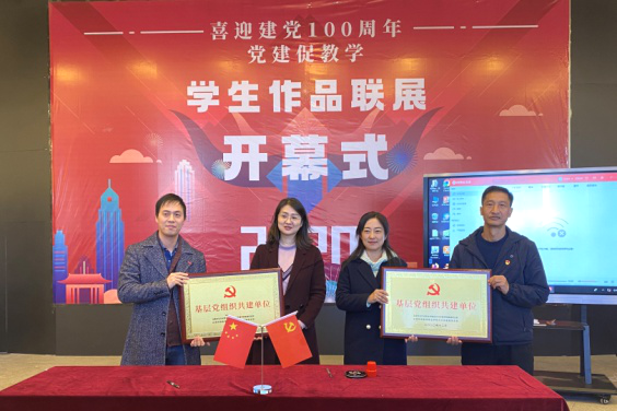 签约仪式后,喜迎建党100周年暨“党建引领”学生作品联展开幕。联展中,双方教职工和学生就党建工作、思想政治教育、创作思路、表现技法等方面做了深入交流。大家纷纷表示此次活动是两校基层党建与业务深度融合的有力举措,为双方基层党组织建设和师生发展搭建了平台,办了实事、办了好事,是新时代校校党建共建共享,开拓新局面的有益尝试。
