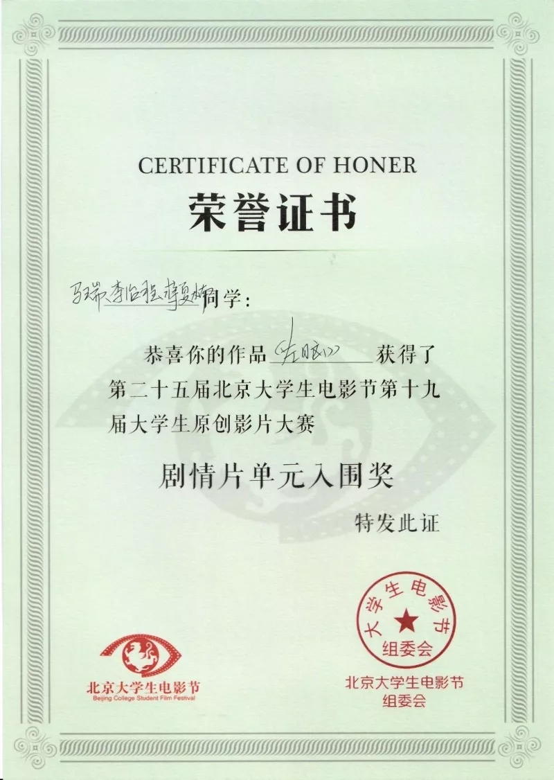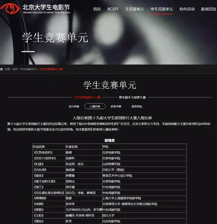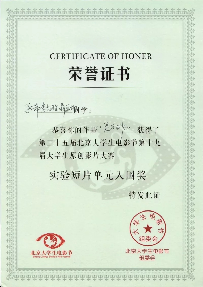 2018 年5月4日下午14:00于北京师范大学北国剧场举行的第二十五届北京大学生电影节暨第十九届大学生原创影片大赛活动中,我院2013级三年制大专数字媒体艺术设计专业优秀毕业生在校企合作单位昆明蔻谱文化传播有限公司的指导下,创作的作品《灵与砂》和《左脑》分别入围实验短片单元和剧情片单元。