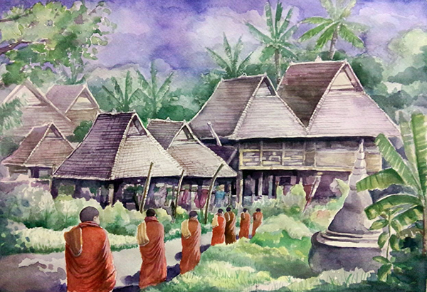 02、<<在路上>> ——“在路上”该作品源于云南西双版纳橄榄坝结合曼春满佛寺僧人及当地人们的信仰而展开的创作,主要表现人生就是一个修行的过程。