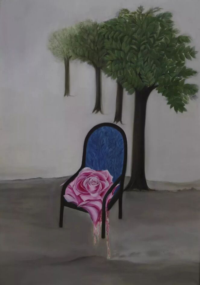 的确,我们很难清晰地看到她绘画中外部素材的广阔性和完整性,它甚至与当代流行的东西发生抵触,如果纯粹从形式美学的角度来看,她这些年的创作是不讨好的,我几乎看不到多年一拨波流淌的观念、潮流、技巧在她作品中有什么影响,她似乎更热衷于用指尖来触碰易碎的现实,如易于消失的一片花瓣、一张模糊面孔、一片飘走的云……是的,宋梓萍的作品在视觉上找不到企图要征服观众眼睛的力量。