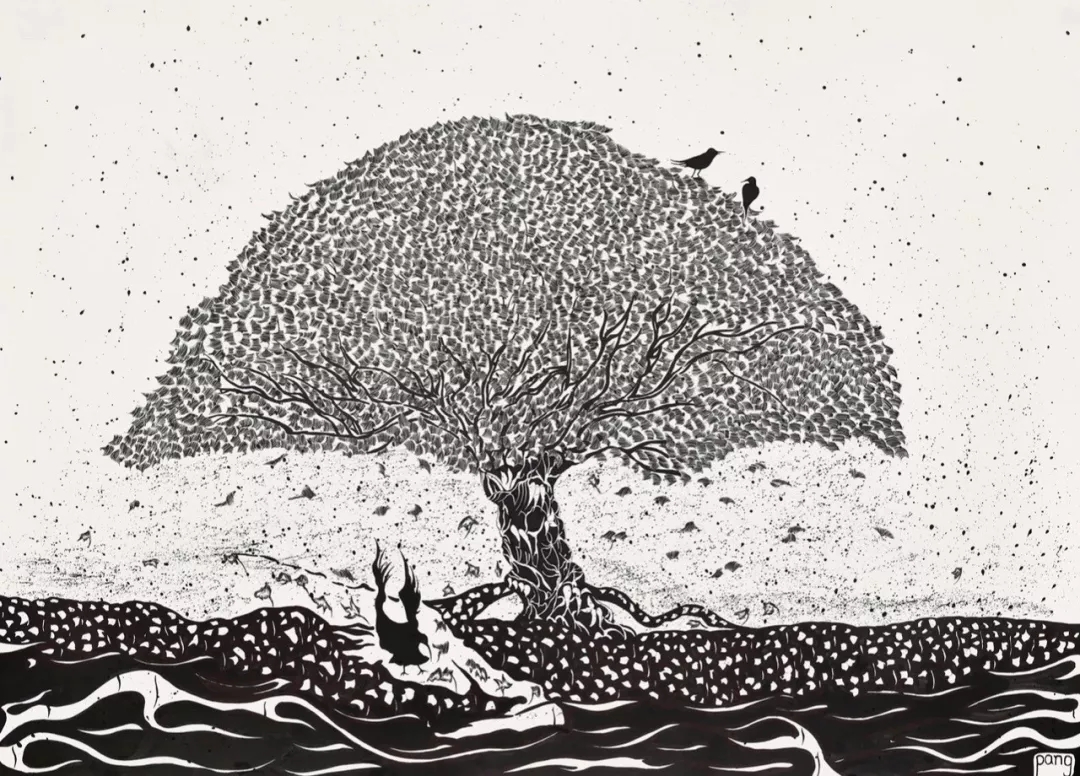 时光如梭,自13年毕业近6年后,我俩因故在深圳重遇。而得知好友即将举办个人绘画作品展,这样的消息让人难掩激动,我便迫不及待地向他要到所有的作品一一细看。尽管那时近半数作品还没有确立指向性的名称,但是图像本质的内容都已然足够表达他对于“绘画”这一命题的的思考和理解。由于从小就受到他父亲对于中国传统水墨的造诣了解的影响,家泰对于绘画的情感是由心而发且不掺杂一丝妄念的。我相信这不仅是成长环境的熏陶影响,也是一直以来他内心对于传统水墨作品中蕴含着万物有灵境界的精神追求。