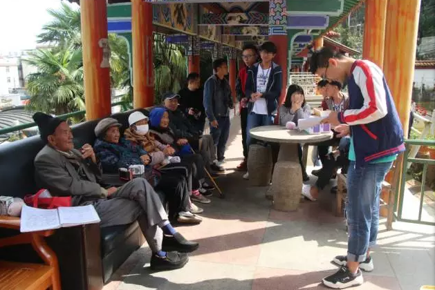 进入公寓,我们积极向老人打招呼,老人热情的接待了我们,也和我们热情的交流。虽然不擅长表演的我们也为他们表演许多。一起聊天一起唱歌、一切都是那么其乐融融。