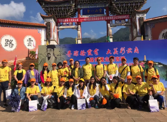 "寻踪徐霞客 大美彩云南"媒体重走霞客路宣传推介云南旅游文化活动于7月29日在大理白族自治州宾川县鸡足山举行,来自全国多所高校,参与"霞客行文创旅游产品设计大赛"30名大学师生包括云南文化艺术职业学院设计与传媒学院师生5人和媒体记者一起重走霞客路,进行采风。