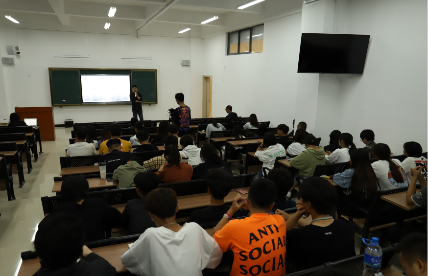 当晚19:00分享会于一号教学楼101阶梯教室正式开始,本次参加分享会的同学来自于设计与传媒学院的广告设计与制作、视觉传播与制作、数字媒体艺术设计、网络营销及会展策划与管理专业。