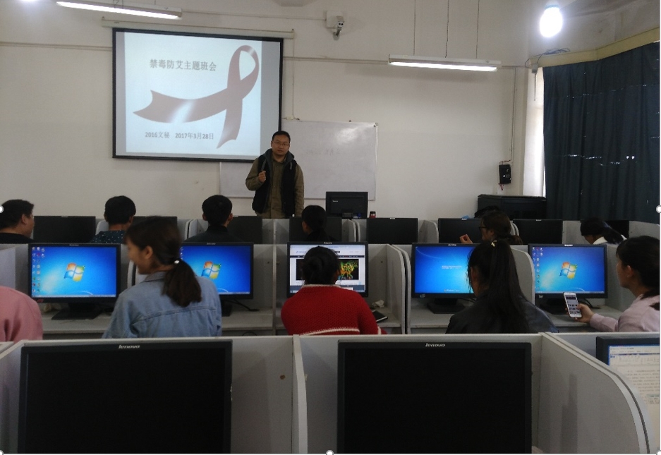 各班班会以班主任和同学们之间相互宣讲法律知识、禁毒防艾知识的方式展开。各班通过大量形象、生动的图片,翔实的事例,宣传讲解了国家与禁毒防艾相关的法律法规,毒品的危害以及怎样抵制毒品,艾滋病的危害,传播途径及怎样预防艾滋病。活动还要求各班观看以“关爱自己、关爱家人、远离毒品”为主题的禁毒防艾教育宣传片《纸飞机》,以悲剧故事为载体,使禁毒防艾的观念进一步扎根于学生心间。活动形式相结合,广泛宣传了党和国家的禁毒防艾方针、政策和禁毒防艾的相关知识。