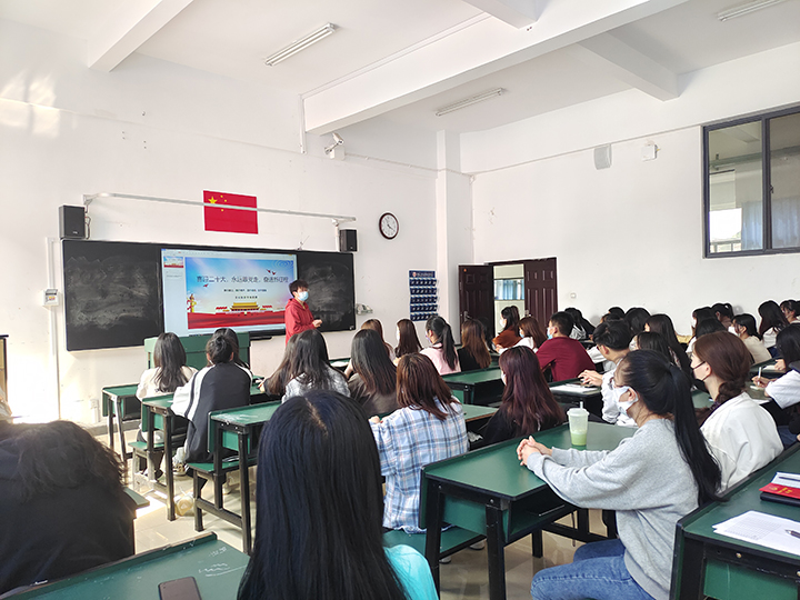 团委组织委员2021级高速铁路客运服务班胡桂琴同学以“习近平与青年朋友们”为主题讲授团课,大家一起学习了习近平总书记给中国单板滑雪运动员、成都市外国语学校学生苏翊鸣的回信,并交流感悟。
