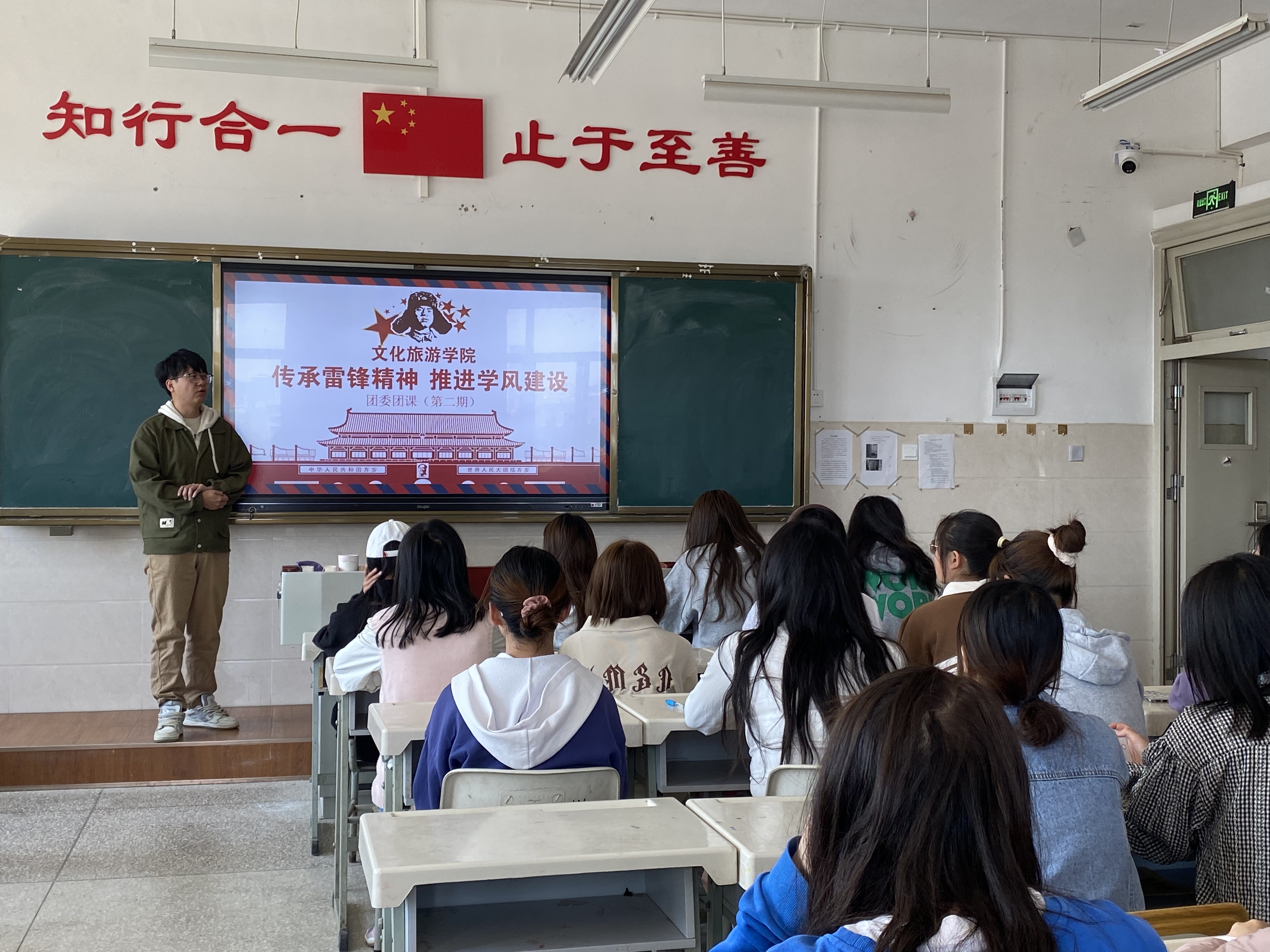 为进一步贯彻习近平总书记关于深入开展学雷锋活动指示精神,积极响应习总书记弘扬新时代雷锋精神的号召,积极培育和践行社会主义核心价值观,不断提升学生思想道德素质,营造友善奉献、文明和谐的校园风尚,文化旅游学院团委于3月29日开展了“传承雷锋精神 推进学风建设”第二期主题团课。文化旅游学院团委书记晏煜斌老师,各班团支书及2021、2022级入团积极分子参加了本次团课。