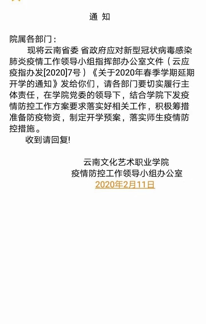 关于2020年春季学期延期开学的通知