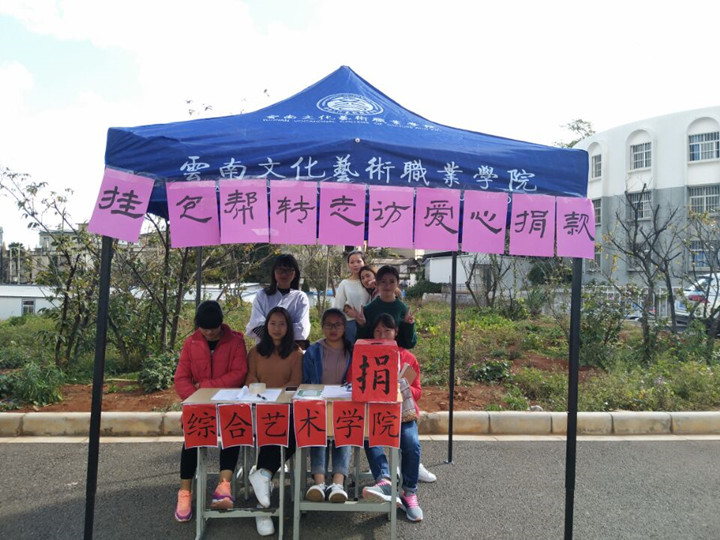 2017年11月29日,关于挂包帮,转走访,爱心捐款活动批文在各高校正式下达,云南文化艺术职业学院接到批文后,第一时间召开会议,展开募捐活动。