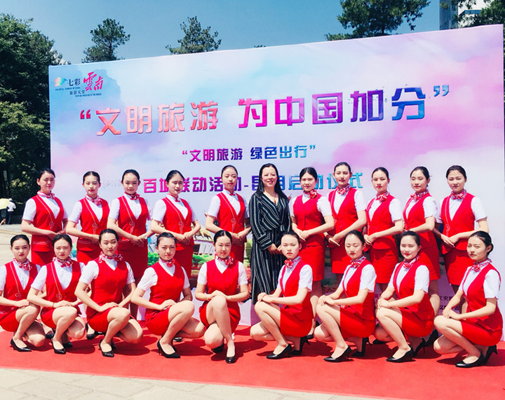 为进一步实现校内教学与校外实习实训的结合,为学生提供良好的锻炼平台,培养学生专业应用能力,实现零距离教学,积累工作经验,促进知识、能力和素质的全面提高,充分发挥校外实训基地的保障作用,2018年5月18日至5月19日综合艺术学院李平老师带领2016级和2017级空乘专业的20名同学参加了在昆明市西山区碧鸡广场举行的2018年中国旅游日云南省分会场的礼仪活动作为校外实习实训内容。