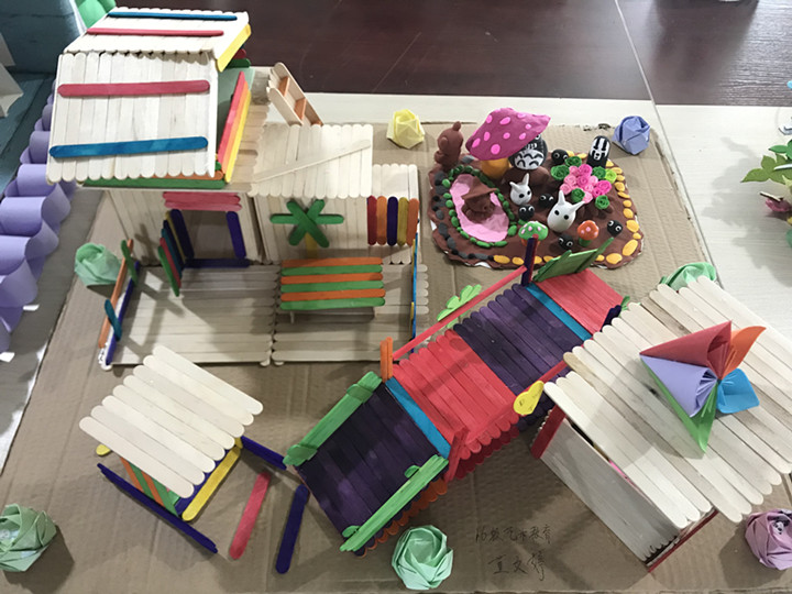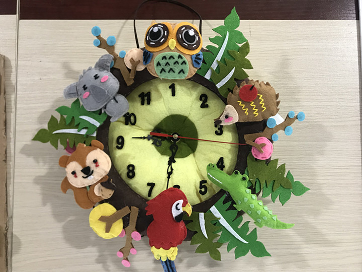 本次手工作品展以“创·意”为主题,49名同学手工制作了纸浆画、手工花、编藤、超轻粘土、剪纸、创意环保等50余幅作品。作品主要取材于布、纸盒、餐巾纸、树叶、石头、沙子等材料,具有较好的创新性、环保性、观赏性和趣味性。既符合学前儿童的年龄特征,又有童趣,环保理念。精致美观的手工制品,也反映出同学们心灵手巧、学有收获。