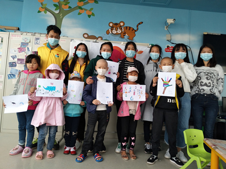 团总支记者部的成员为昆明市儿童医院“新阳光 病房学校”的这些可爱小天使们开展了“你心中的大树”为主题的手工、绘画活动。首先团总支记者部的5位同学,带领可爱的小天使们一起做手工。接着,由记者部部长唐荣敏同学教可爱的小天使们画画。最后,整个活动在轻松愉快的气氛中完满结束。