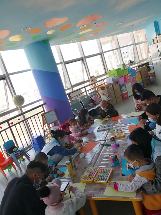 团总支成员为昆明市儿童医院“新阳光 病房学校”的这些“口罩天使”们开展了“家和医院”的主题活动。在团总支同学的引导下,“新阳光 病房学校”的小朋友们围绕这一主题进行了热烈的讨论,激发了小朋友们对此次绘画活动的浓厚兴趣。接着,志愿者们带领小天使们绘画。整个活动气氛轻松愉快,活动现成成了欢乐的海洋,大朋友、小朋友的心也变得更加贴近,彼此的友谊也进一步得到加深。通过绘画小朋友们忘却孤独,排解内心的焦虑、恐惧......