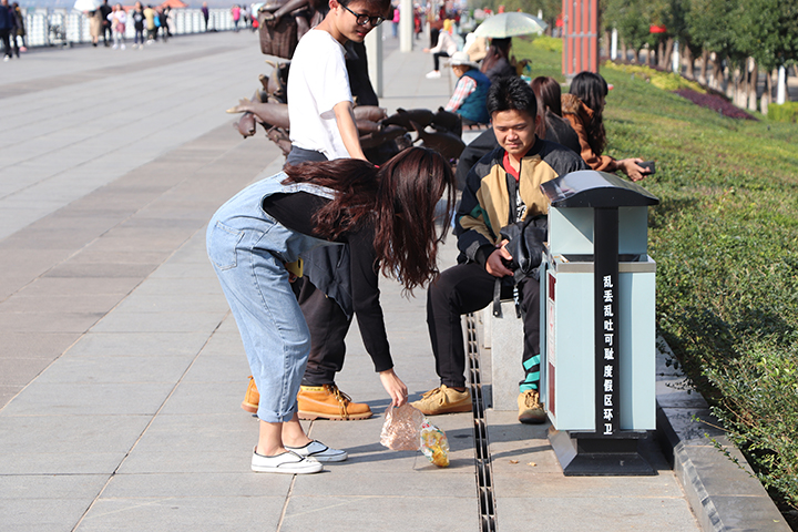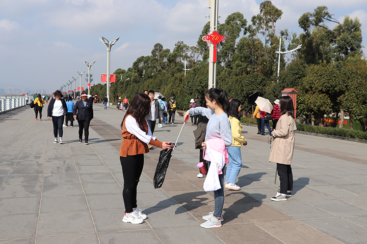 活动开始后,大家步行前往海埂大坝,开展环境保护志愿活动。一路上大家不惧脏累,利用自带工具,认真细致地清理了道路上各种垃圾等。同时,通过现场讲解,行为劝导等方式,积极向行人、游客进行环境保护宣传。