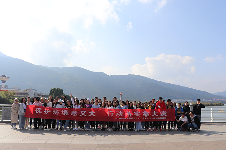 青年学生的价值取向决定了未来整个社会的价值取向,青年学生处在价值观形成和确立的关键时期。为引导青年学生自觉树立正确的价值观,强化学校精神文明建设和学生职业素养培养,切实加强学院党建带团建工作,不断加强团组织的凝聚力与战斗力,发挥青年预备党员和团员后备军的作用。2019年11月7日下午14时,综合艺术学院2018级空中乘务、旅游管理班团支部在班主任马仕美老师的带领下,组织开展了主题为“保护环境意义大,行动落实靠大家”的海埂大坝环境保护志愿者活动。