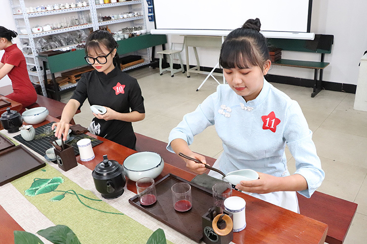 11月15日上午9时,由云南文化艺术职业学院主办,教务处承办,综合艺术学院文秘教研室协办的“匠心杯”中华茶艺赛项现场茶艺竞技在茶艺实训室正式开始。中华茶艺比赛由知识竞赛和技能展示两部分组成,知识竞赛已于日前完成,今天开展的是现场茶艺竞技。