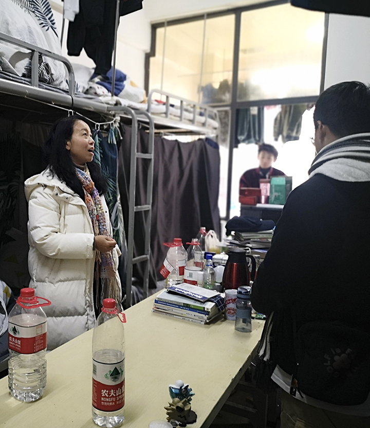 在走访检查的过程中,各位老师针对宿舍安全工作向同学们再三强调。叮嘱学生一定要注意人身财产安全,外出及时向家人和辅导员、班主任报备并按时返校;提醒各宿舍同学要格外留心降温天气用电安全,坚决禁止使用大功率电器,同时不断提高自我防范意识和安全意识,同时引导同学们形成文明住宿习惯,保持宿舍文明、整洁。走访中,老师对走访的每一间宿舍进行督查登记,以口头表扬、现场促改、教育引导等方式促进学院学生宿舍文明建设,帮助同学形成良好“宿风”。