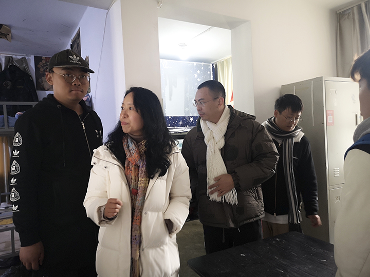 12月5日下午,综合艺术学院直属党支部书记孙梓菱老师,政治辅导员宋寅诚老师,学生专干卢炜老师、刘庆凯老师与学生会成员和团总支学生干部,根据活动安排再次深入综合艺术学院学生宿舍,走进学生中进行走访检查。