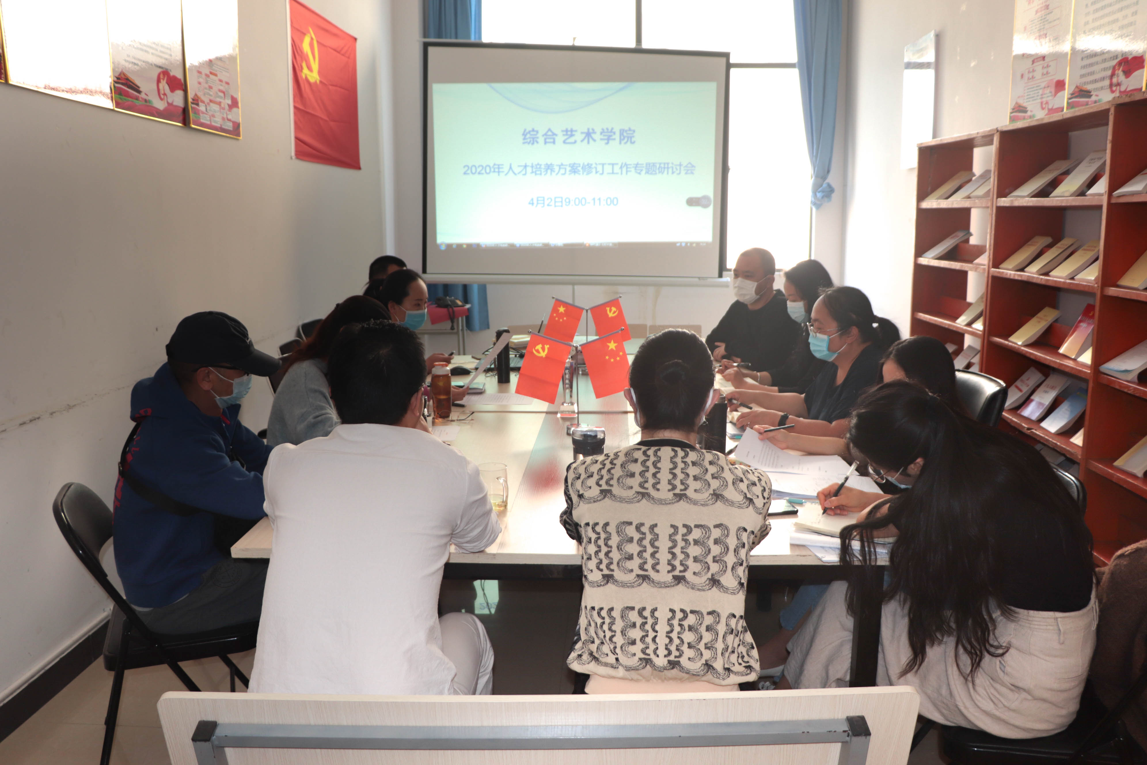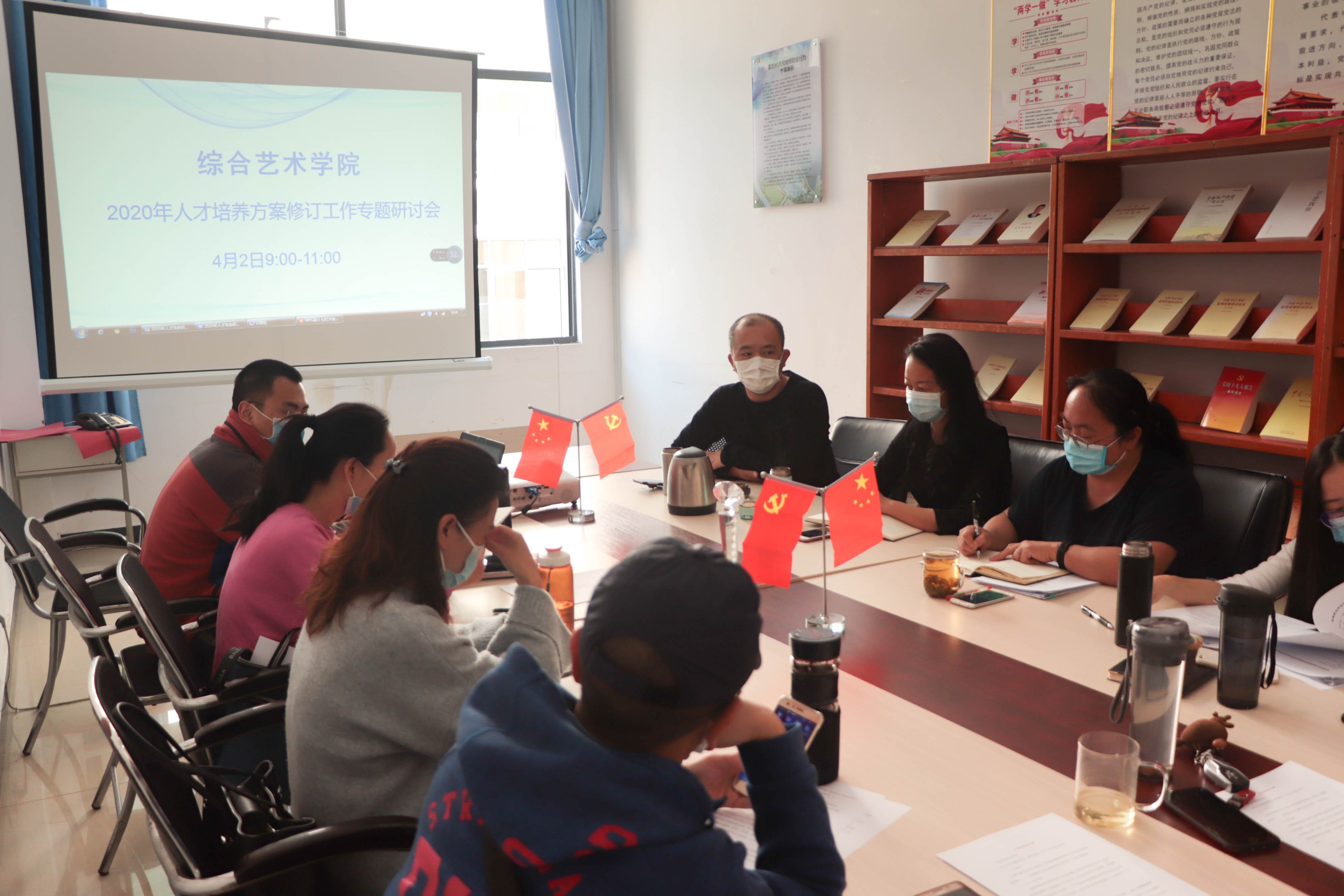 为推进专业内涵建设,完善课程体系,提高人才培养质量,2020年4月2日上午9时,我校2020版人才培养方案研讨会在3-304召开,综合艺术学院直属党支部书记孙梓菱、院长杞嵘、副院长张汝兰、各教研室主任、教学秘书、辅导员参加了会议。