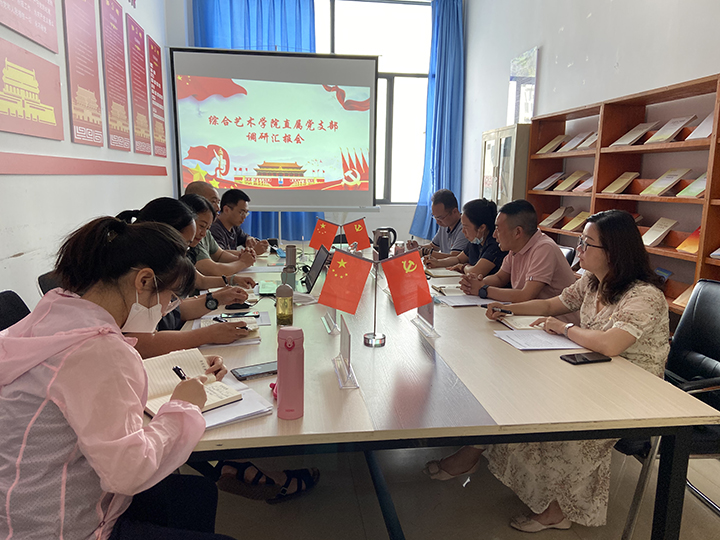 2020年6月1日上午,院党委副书记马武宏、宣传部部长张毅、组织部副部长(主持工作)左欣悦、设计与传媒学院直属党支部副书记(协助学生处工作)蔡聂奎到综合艺术学院开展党建调研。综合艺术学院直属党支部书记孙梓菱,院长、宣传委员杞嵘,副院长张汝兰、组织委员喻晓蓉、纪检委员宋寅诚参加调研。