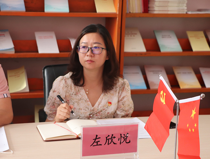 综合艺术学院直属党支部书记孙梓菱代表综合艺术学院直属党支部,从支部基本情况、疫情期间支部工作、支部工作亮点、存在问题、下一步工作计划共五个方面,向调研组做了支部的详细汇报。