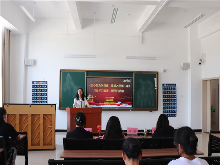 为庆祝中国共产党建党100周年,纪念“五四运动”102周年,5月8日中午12:40分综合艺术学院举行了“凝心聚力学党史、重温入团第一课”党史学习教育主题团日活动,以党建带团建,切实提升组织凝聚力。综合艺术学院直属党支部书记孙梓菱、政治辅导员刘娢汐、团委书记晏煜斌、教师杨起帆、蔡燕、2020级全体团员及5名申请入团的同学参加了此次活动。