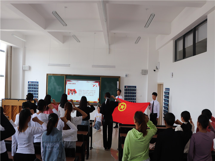 随后,由综合艺术学院团委副书记张宗丽同学带领全体团员重温入团誓词,让团员们明确自己肩负的责任,努力履行团员义务,同时也激励尚未入团的同学不断努力,坚定向团组织靠拢的决心。