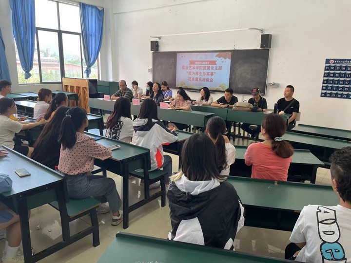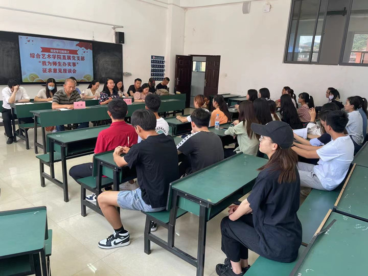 为深入开展党史学习教育,将党史学习教育与“我为师生办实事”相结合,5月20日,综合艺术学院直属党支部在3-307教室召开师生代表座谈会,会议由综合艺术学院直属党支部书记孙梓菱主持,院长杞嵘、政治辅导员刘娢汐及全体党员、28名学生代表参加了此次座谈会。
