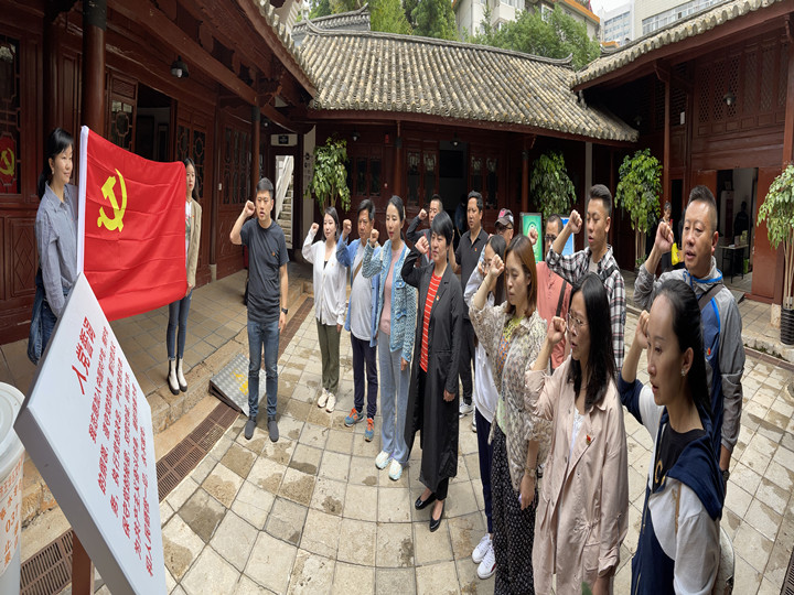 在朱德同志旧居纪念馆,由音乐学院直属党支部书记张觅同志、综合艺术学院直属党支部组织委员刘娢汐同志共同带领大家重温入党誓词,坚定了党员同志们的理想信念和党性认识,同时激励党员同志们不忘初心、牢记使命、永远在路上、不懈奋斗。
