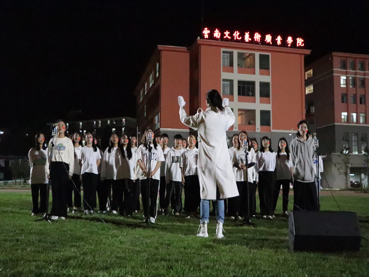 百年恰中华,青春正当红,为宣传贯彻习近平总书记在庆祝中国共产党成立100周年大会上的重要讲话精神,喜迎COP15生物多样性大会和2021级新生入学,教育引导广大 师生学史明理、学史增信,学史崇德、学史力行,营造温馨和谐、爱国奋进的校园文化氛围,以实际行动庆祝建党100周年暨建校65周年。文化旅游学院大学生宣讲团成员共同以“传承红色圣火,共建绿色家园”为主题于2021年11月4日19时在足球场圆满举办本次晚会。