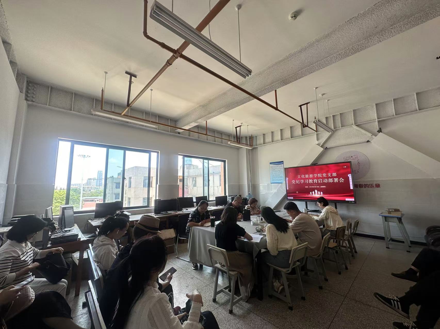 为深入贯彻落实党纪教育要求,提升党员纪律意识,2024年4月18日,文化旅游学院党支部在尚能楼四楼召开党纪学习教育布置会,党支部书记魏岷主持会议并讲话,全体党员参会。